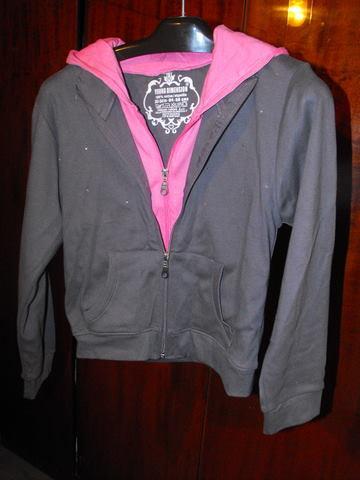 Nenešiotas, dekoruotas blizgučiais ir antro rožinio džemperio imitacija, du užtrauktukai :) xs/s