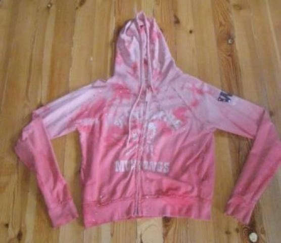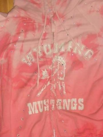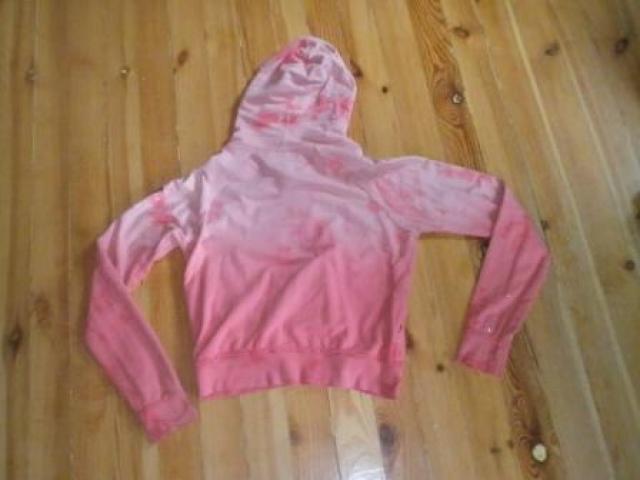 Gražus, trumpas, minkštas, užsegamas džempukas. Priekyje su paveikliuku ir papuoštas blizgančiai akmenukais. Su kapišonu. Dydis: M-L.