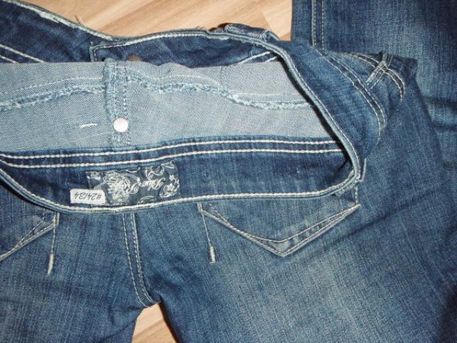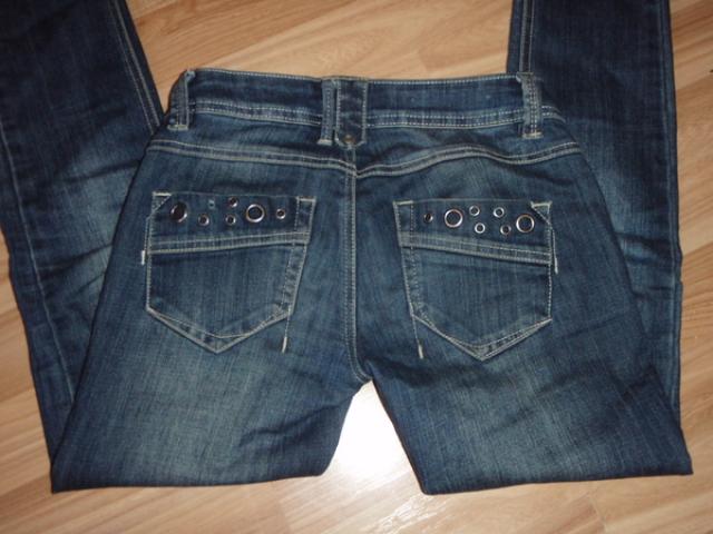 aptemti džinsiukai žemu liemeniu. Yra keleta defektū kurie matosi nuotraukoje: ant užpakalinės kišenės nėra vieno papuošimo.