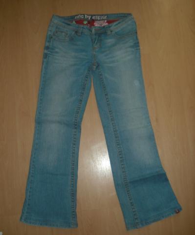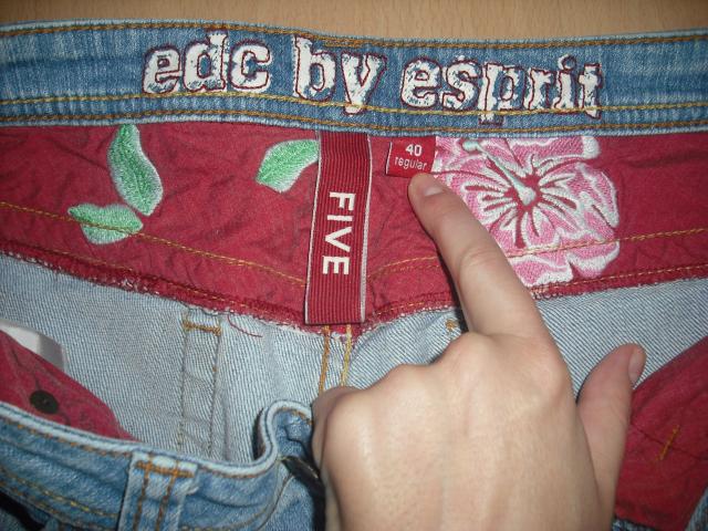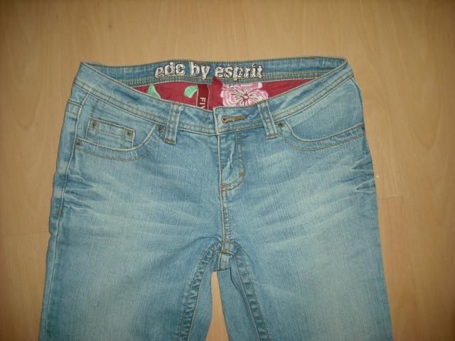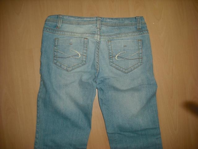 Gražūs džinsai, su graziu pamušalu, tik padalkės šiek tiek panešiotos, galima pasilenkti ir bus kaip naujos. Medžiaga šviesaus standaus džinso. Liemuo: 42cm, Klubai: 45,5cm, Nuo klyno iki viršaus: 20cm; Nuo klyno iki apačios: 76,5cm. sudetis: 99medvilne, 1elastanas.