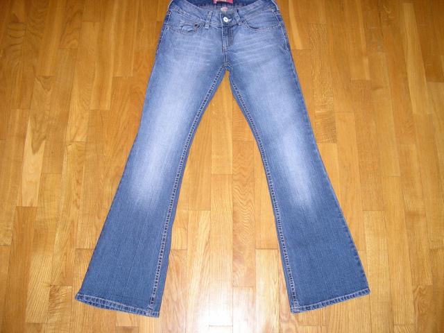 Dzinsai H&M& Denim. Ilgis nuo liemens 96cm, ilgis nuo klyno zemyn 75,5cm, liemens apimtis 2x35cm, klubu apimtis 2x44,5cm, nuo liemens zemyn (iki klynuko siules) priekyje 18,5cm, nuo liemens zemyn nugaroje iki klyno 31cm. 98%medvilne, 2%elastanas
