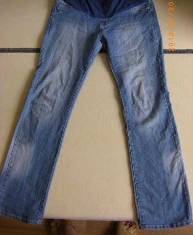 Šviesiai mėlyni džinsai nėščiajai. Dydis nenurodytas, bet pati prieš nėštumą nešiojau M-L. Jei ką sudomins, galėsiu parašyti išmatavimus. Turi defektų - viršuje ta tamprioji medžiaga kiek paplyšusi (nuotraukoje matyti).