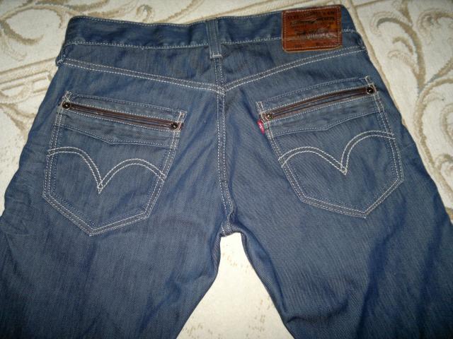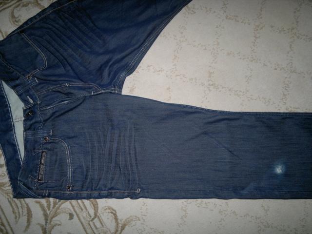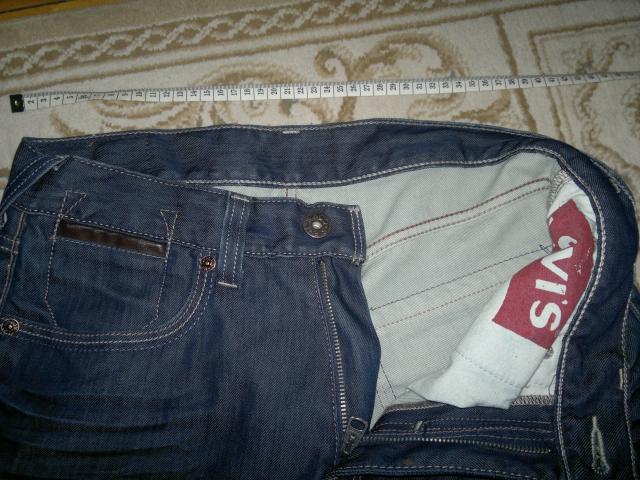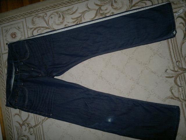 Originalūs kokybiški džinsai. Dešinys kelis su paplyšimo efektu, matosi nuotraukoje. Siuntimo paslaugas apmoka pirkėjas. Ilgis 102cm. Juosmens plotis 42cm. Plotis ties šlaunimis 31cm. Plotis ties kelnių galais 22cm.