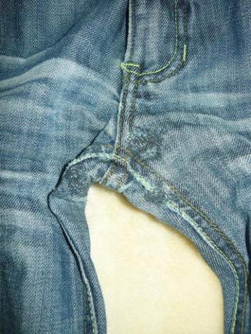 Džinsai su defektu. Jie buvo plyšę, bet visai dar nauji, nes užsidėta tik tą vieną kartą. Šiaip sulopyti tvirtai, pirkti parduotuvėj effigy.