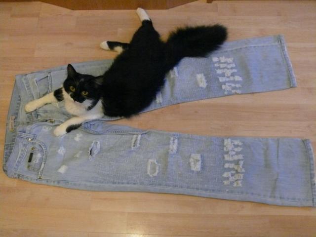 Katės nemainau, bet ji labai nenorėjo trauktis nuo džinsų