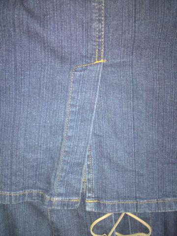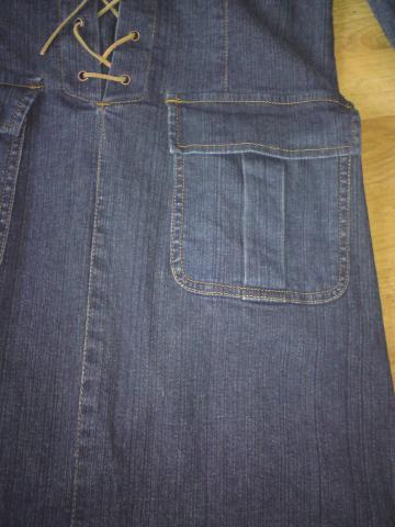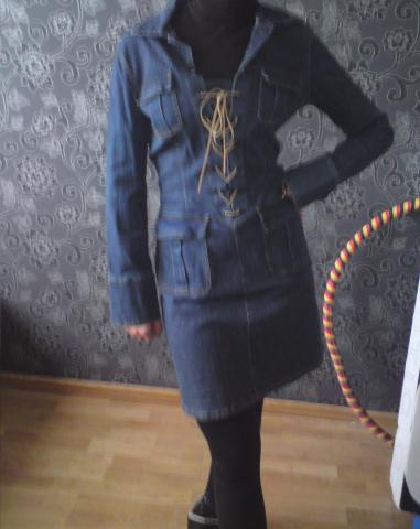 Natūralaus džinsinio audinio suknelė. Liemuo suvarstomas kaip korsetas, pakelia krūtinę. Yra skeltukas. Šiaip lieknesnėms gražiau atrodo,bet truputį tamposi.