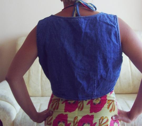 Trumputė, kaip dabar madinga. Galima nešioti kaip trumpą palaidinę. Minkštos, lengvos džinsinės medžiagos.