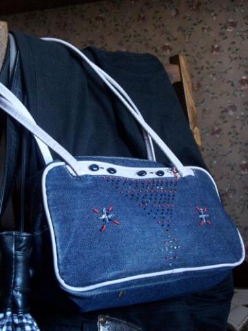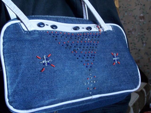 dzinsinis, pacios siuvinetas mazyciais karoliukais