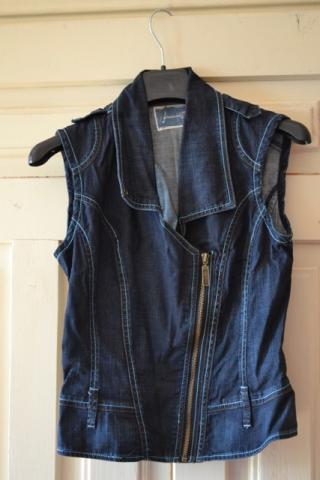 Įdomi džinsinė liemenė kreivu užtrauktuku :) dėvėta porą kartų, be defektų :)