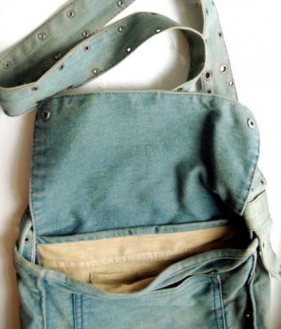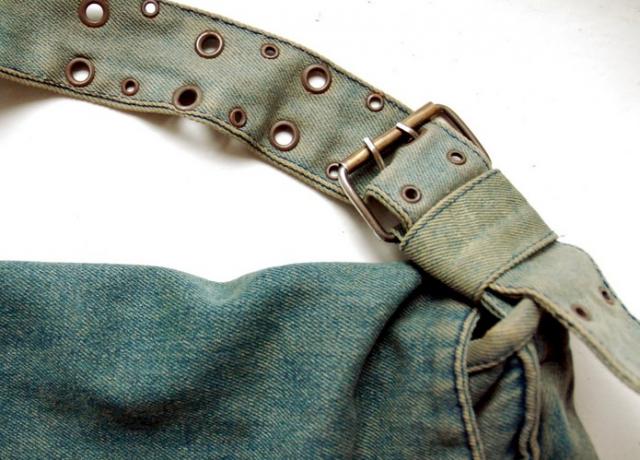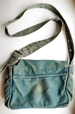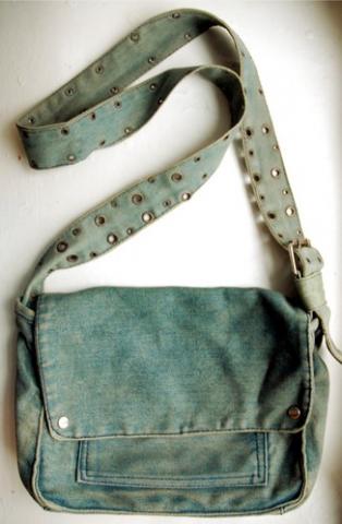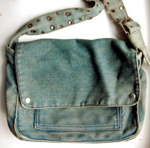 Sendinto džinso medžiaga, nedidelė (25x34 cm), bet labai talpi. Rankenos ilgis keičiasi - gali būt trumpa, gali būt ilga.