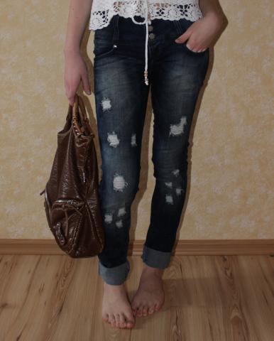 Labai žavios,plėšytos kelnės. Idealios būklės,užsidėtos vos pora kartų. Man jos per ilgos,todėl atsiraitojau. Jei domina,kaip atrodo neatsiraitojus,rašykite,įkelsiu papildomai nuotraukų.. Labai gražiai kelnytės apsitempia,išryškina figūra. Dėl išmatavimų rašykite :)