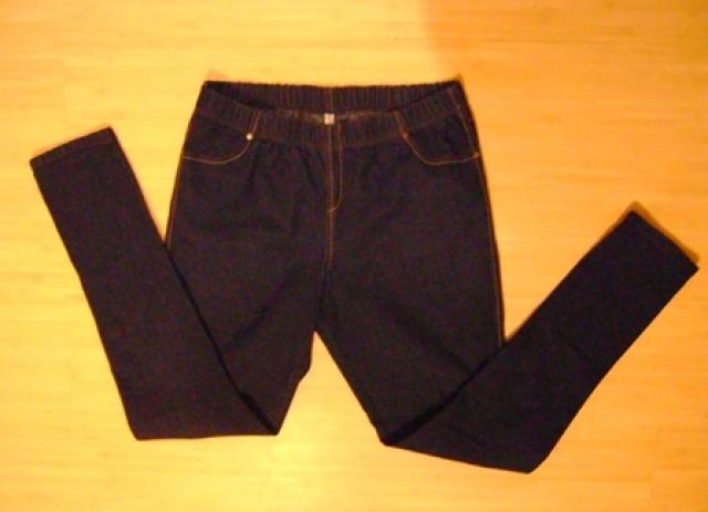 Šios tympos yra iš džinso, o ne imitacija. Tinka nėštukei arba stambesnei, nes su gumu :) Tamsiai sodrios mėlynos spalvos, gražūs, patogūs, madingi - kaip nauji, nes nešiojau vos vieną savaitę :) Džinsų/tympų ilgis matuojant nuo klyno 79 cm, per liemenį nuo 40 cm iki 55 cm, nes su guma, tai tempiasi, kiek reikia :)