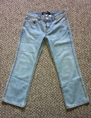 Deveti sviesus dzinsiniai kapriai. Pirkti is victorias secret parduotuves.formuoja apvalesni uzpakaliuka,optiskai pakelia ji.Dydis O (JAV).Liemens apimtis 68cm,ilgis nuo liemens iki apacios 79cm.