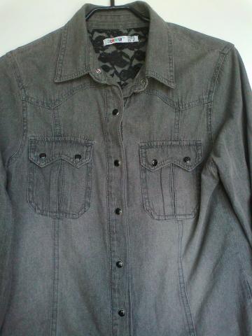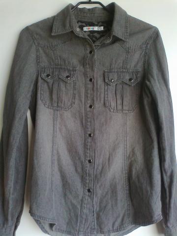 Nauji, gražūs, pilki džinsiniai marškinukai.
