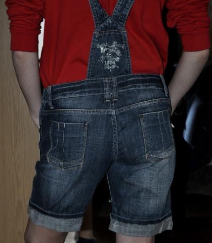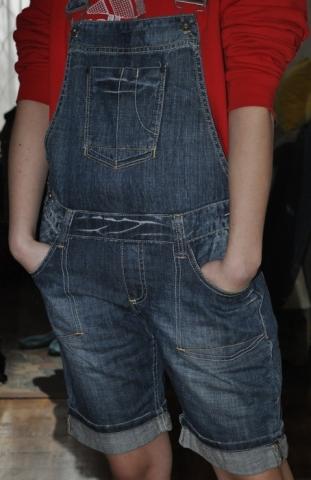 Mažai nešioti, puikios būklės džinsiniai šortai. Galima nešioti dviem būdais: kaip kombinezoną arba kaip šortus. Dėl kainos galima derėtis :)