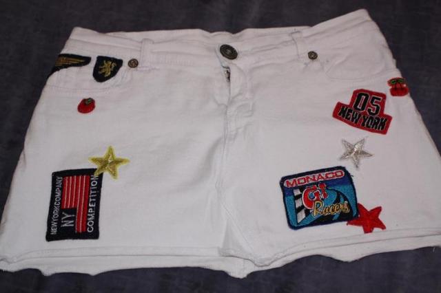 dzinsinis baltas sijonukas su amblemom 36/38d