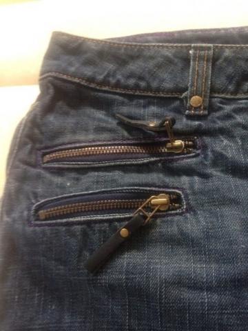 Džinsinis Crocker sijonas Stilingas #džinsinis sijonas. Kišenių užtrauktukai papuošti odinėmis detalėmis. Per liemenį 35cm. Ilgis 48cm. Siunčiu