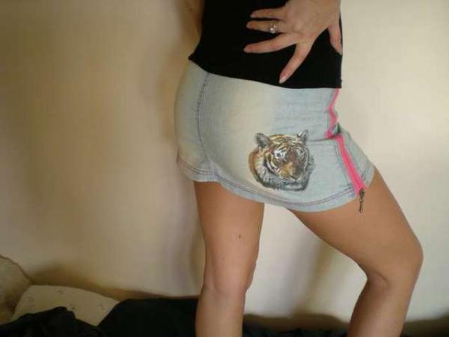 Tikrai labai originalus, iskirtinis sijonukas. Tamprus, zeminto liemens. Sonuose su uztrauktukais, ant uzpakaliuko tigro galwos emblema. Jo ilgis 28cm, liemuo 78cm. Turi mazyti defektuka, kuris pateiktas paskutineje foto. Dydis: XS-S. Prekinis ženklas: La Verno. Sudėtis: Dzinsas ir yra daug elastano. Kaina 25lt.
