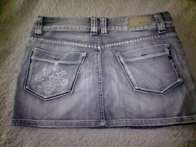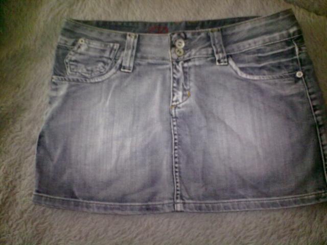 Labai grazus, dzinsinis sijonukas, pilkas :) mielai dar pati nesiociau, taciau man per didelis :) nedaug kartu buvau uzsidejusi :) nenunesiotas, bukle puiki :)