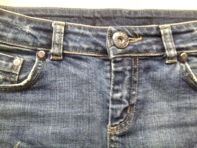 Gražus džinsinis sijonukas su plėšyta apačia ir tokiomis pat imitacijomis. Firma: dsquared2 jeans + išlaidos už siuntimą