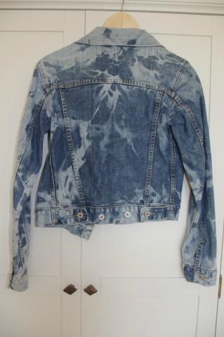 Šviesios/tamsios mėlynos spalvos plėmuotas storo džinso švarkas