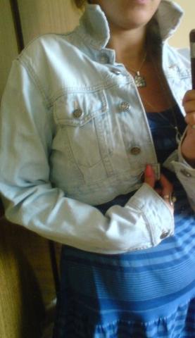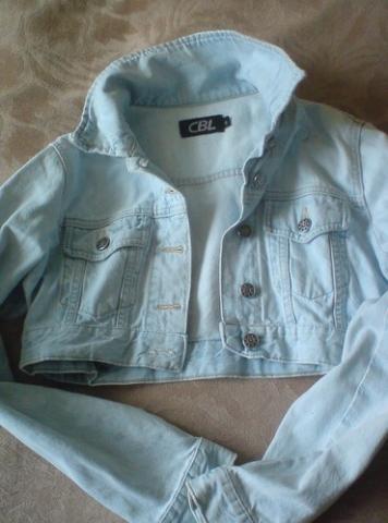 Labai fainas trumpas džinsinis švarkelis. tinka ant betkokios maikutės ar megztinuko;) Rašo dydį S tačiau puikiai tinka ir M.