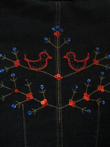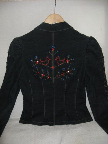 Švarkelis tiktų merginai su didesniu biustu. 36 - 38 dydis. Pati siūvinėjau lietuviškais motyvais.