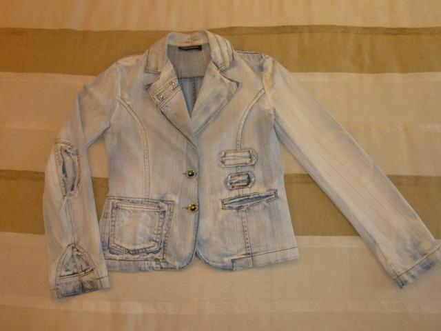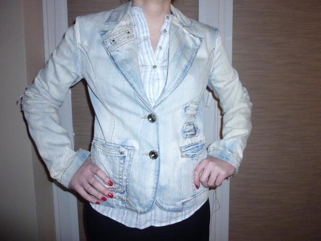Džinsinis švarkelis. Merginai nuotraukoje jis didokas:) MATMENYS: Ilgis: 57cm, Rankovių ilgis:63cm, Krūtinė: ~48x2cm (kažkiek cm galima dadėti, Liemuo: 44x2 cm. Vilnius