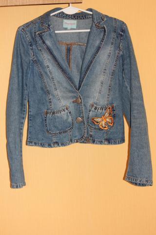 Džinsinis švarkelis, su drugelio aplikacija ant kišenės