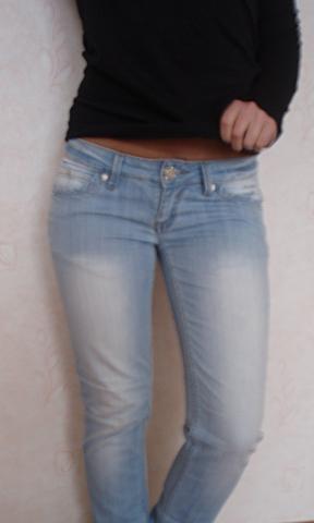 Labai geros būklės pablukinti šviesūs džinsiukai. 27 dydis, nesitampo.