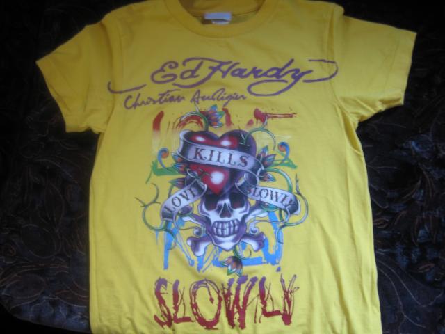 Ryskiai geltona Ed Hardy (tipo) maikute. nenudeveta.