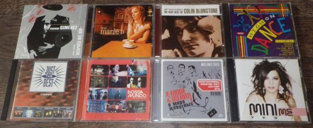 Eduardo Gimenez - Despues Del Rio, Prior Records, 2006; Marie N - Ma Voix Ma Voie, Baltic Records, 2001; Colin Blunstone - I Don't Believe In Miracles(The Very Best Of), Sony Music, 1995; High On Dance, Warlock Records, 1995; Just The Best 1/2000, BMG, 2000(sulūžus dėž.); Bossa Mundo...When Brazil Meets the World, Wave Music, 1999; X-Mode & DJ Nil - V Mire Zhivotnich, Sojuz, 2005; Mini Me - Yes, Prior Records, 2009. Visų būklė - l. gera. Jeigu kam nors visai netinka kainos, galime derėtis..