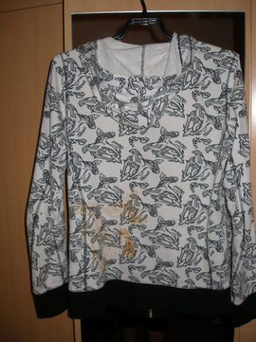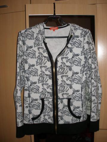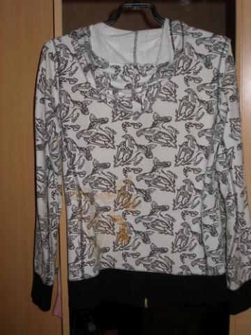 effigy dzhemperis m dydzhio (nors shiajp etiketeje s)baltas, juodaj ishmargintas, dzhemperis su auksiniu trafaretu ant nugaros