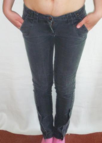 Pilkos, siaurėjančios, galuose su užtrauktukais. Labiau tiktų 34/36dyd. nešiojančioms. (xs-s)