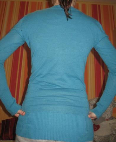 Vieną kartą užsidėtas Effigy megztinukas. Gana ilgas. dydis parašytas XS, bet tinka ir S, kadangi tokius rūbus nešioja, tad nuotraukoj taip apsitempia. Yra ir diržiukas prie jo.
