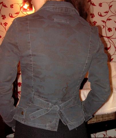Nedaug nešiotas, kažkaip nelipo man, bet dailus labai, išskirtinis :) Jokių defektų. (ten ne dėmė ir ne kažkas ant švarkelio, o objektyvas nenuvalytas buvo)