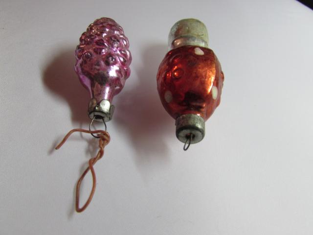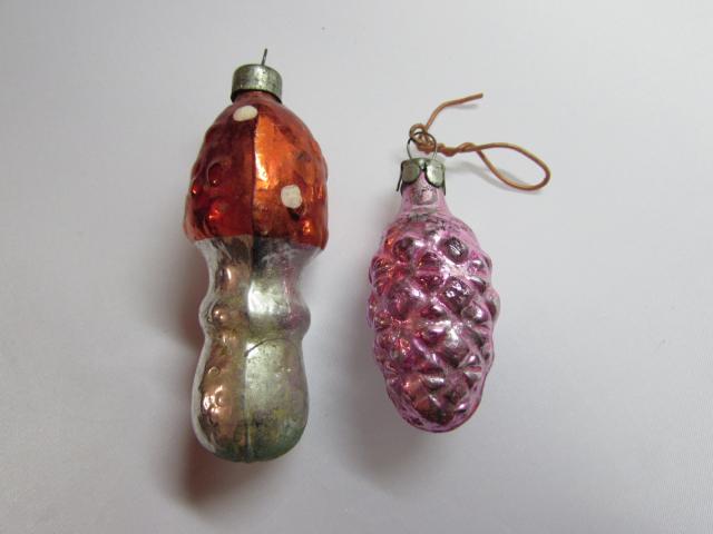 Eglutės žaisliukai - kankorėžis ir musmirė. Sovietiniai, kalėdiniai.