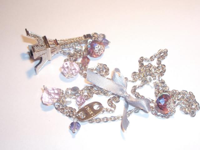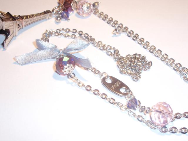 Eifelio pakabukas su swarovski kristalų karoliukais. Ilga grandinėlė.