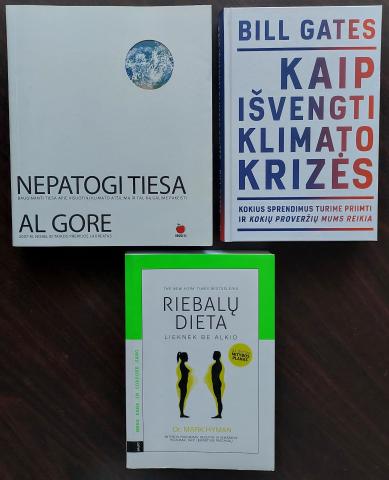 Ekologijos ir keto mitybos knygos 1.Nepatogi tiesa. Al Gore pukios būklės 10 2.Kaip išvengti klimato krizės. Bill Gates puikios būklės 8 3.Riebalų dieta. Mark Hyman 5