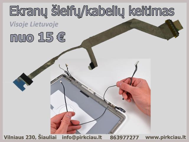 Ekrano ŠLEIFAI / Matricos LVDS LCD kabeliai keitimas, pardavimas Parduodame naujus ir naudotus ekrano šleifus įvairiausių nešiojamųjų kompiuterių modeliams. KONTAKTAI: Tikslaus modelio teiraukitės telefonu +37063977277, el.paštu info@pirkciau.lt ar pasijunkite skype: rego-gps, užeikite į ofisą Vilniaus 230, Šiauliai. http://pirkciau.lt/346-ekranu-kabeliai-nesiojamiems-kompiuteriams PAKEISIME ŠLEIFĄ: Mes pakeisime nešiojamojo kompiuterio ekrano šleifą kokybiškai ir greitai, nes turime vietoje įvairia