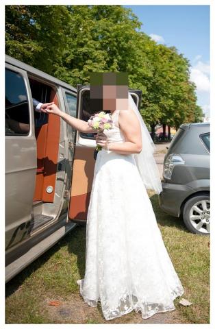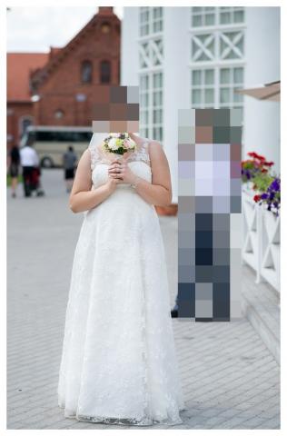 Parduodu vieną kartą dėvėtą "A formos" vestuvinę suknelę. Suknelės modelis siūtas pagal "MoriLee" suknelės modelį. 184 cm ūgiui. Dydis 48-50. Suknelė siuvinėta karoliukais ir nėriniais, dramblio kaulo (Ivory) spalvos, užsegimas - užtrauktukas nugaroje. V formos iškirptė priekyje ir nugaroje tokia pati. Suknelės viduje yra patogus diržas - korsetas, kuris padeda suknelei stabiliai laikytis, taip pat prilaiko krūtinę. Galima dėvėti be liemenėlės, nes yra pakietinti kaušeliai.Suknelė išvalyta valykloje.