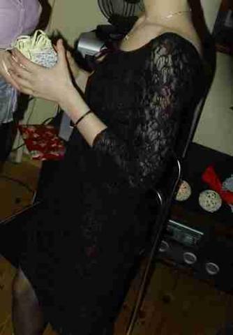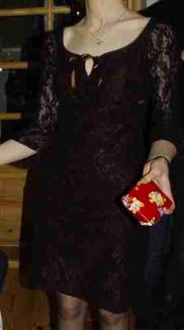 Ruda trumpa suknelė su raišteliu, aptempta, paryškina krūtinę :)