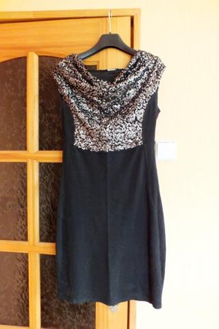 Nuostabi suknele, isryskina figura, puosni ir elegantiska. Juoda su zvynukais.