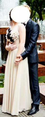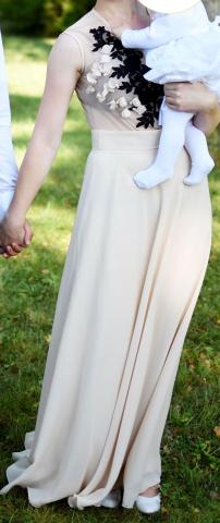 Elegantiška šventinė ilga suknelė. Kūno/smėlio spalvos.