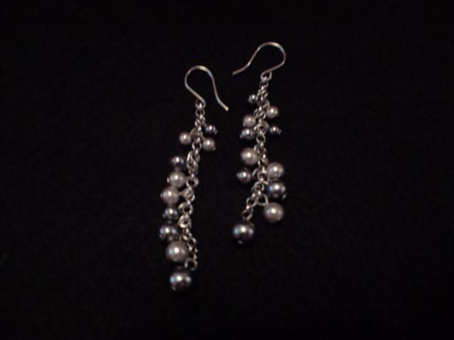 Elegantiški, bet kartu ir kasdieniški auskarai ;] iš skirtingų spalvų perliukų ant tamsintos grandinėlės.