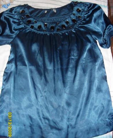 s dyzdio laisva palaidine, elekrines melynos ar zalios spalvos, cia nuo apsvietimo prikklauso :D laisva graziia krenta, na aisku jai dirzelio kokio reikia priderinti. uzsideta viena karta ir tai derinant . bet niekur neiseita su ja