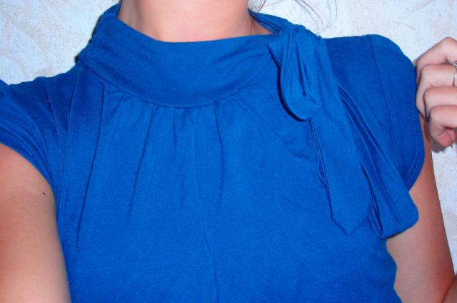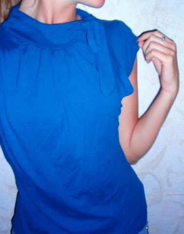 Puošni palaidinė su kaspinėliu prie kaklo. Medžiaga-trikotažas. Tiks tiek 36-38dydžiui. Spalva elektros, nuotraukose kaip mėlyna o realybėi šiek tiek kitokia. Defektų nėra.