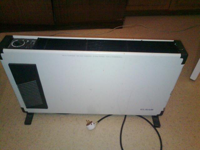 Elektrinis orinis automatinis radiatorius ELRAM (41 x 67 cm), veikiantis 3 rezimais - 750 W, 1250 W ir 2000 W, taip pat ( kad per kelias minutes prisildytu kambari) galima ijungti oro putima. vokieciu gamybos. naudotas. siek tiek dulketas.