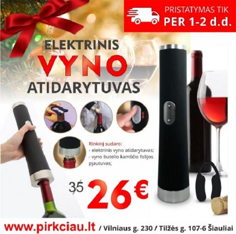 Elektrinis vyno butelio atidarytuvas Mėgstate vyną, bet kas kart vis vargstate jį atidarant? Mes turime puikų pagalbininką kiekvienam vyno mėgėjui + AKCIJA IR GREITAS PRISTATYMAS! Nepraleisk progos, tai gali būti ir PUIKI DOVANA! Plačiau apie prekę : http://pirkciau.lt/namams/4938-elektrinis-vyno-butelio-atidarytuvas-puiki-dovana-ir-praktiskas-daiktas-namie.html Pristatymas visoje Lietuvoje per 1–2 dienas; www.pirkciau.lt info@pirkciau.lt 863977277