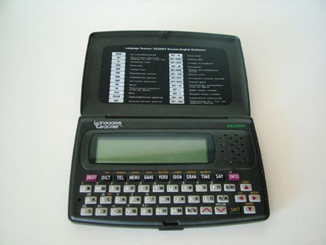 vercia iš rusų kalbos i anglų ir atvirkščiai. daug kitų funkcijų: adresų knygutė, skaičiuotuvas, laiko juostos, žaidimas 'atspėk žodį' ir kt.. vertėjas ištaria verčiamus žodžius. funkcijų daug, bet naudotis paprasta.